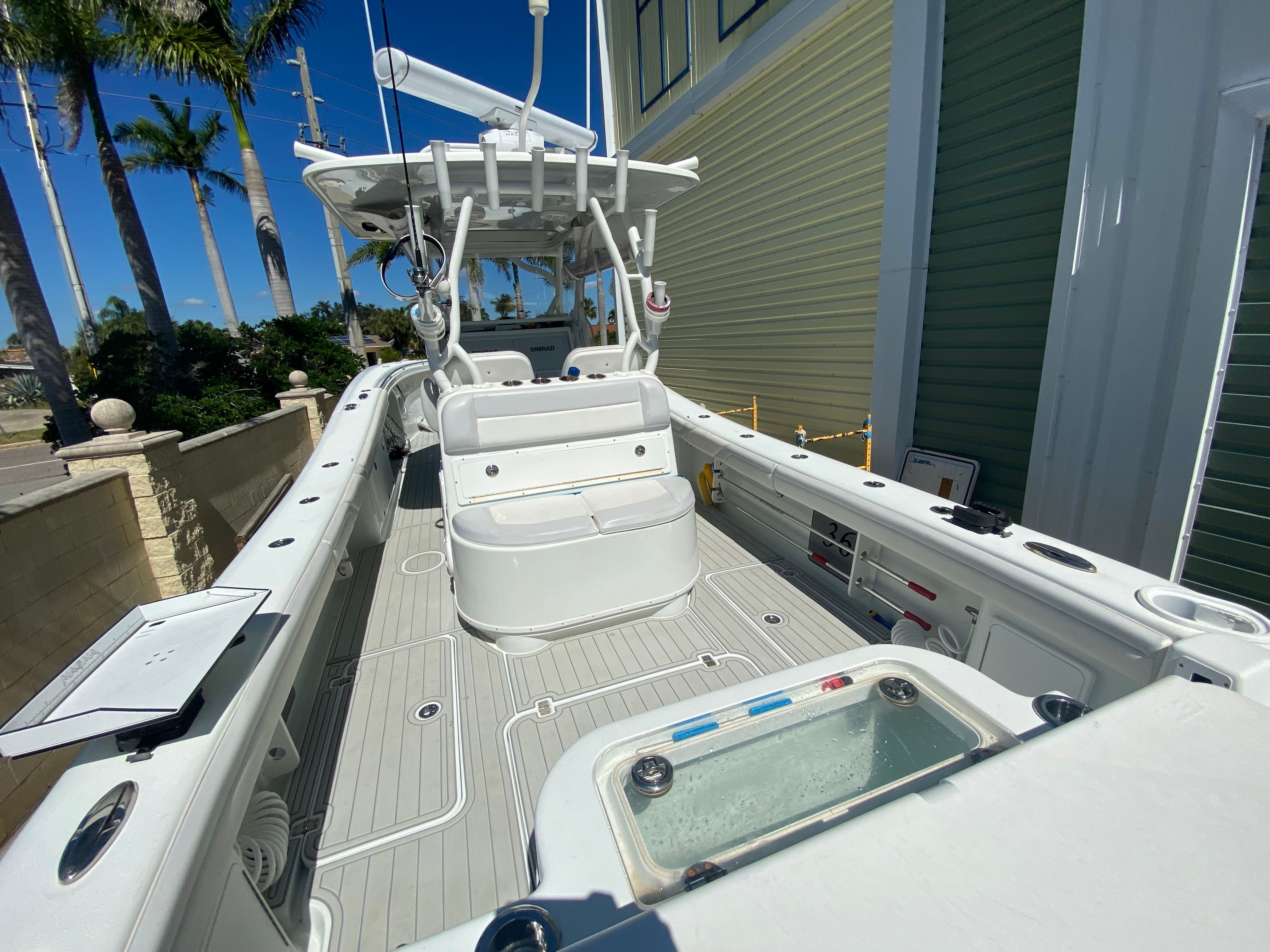 Equipped with three powerful engines delivering a combined 1200 horsepower, the Yellowfin 36 CC is engineered for exceptional speed and agility. The triple-engine setup ensures rapid acceleration, smooth handling, and reliable performance in various conditions. Whether you’re racing to your favorite fishing spot or cruising along the coastline, this Center Console boat for sale offers impressive power and responsiveness. The 1200 horsepower allows you to cover more water in less time, maximizing your boating experience and opening up new possibilities for exploration.